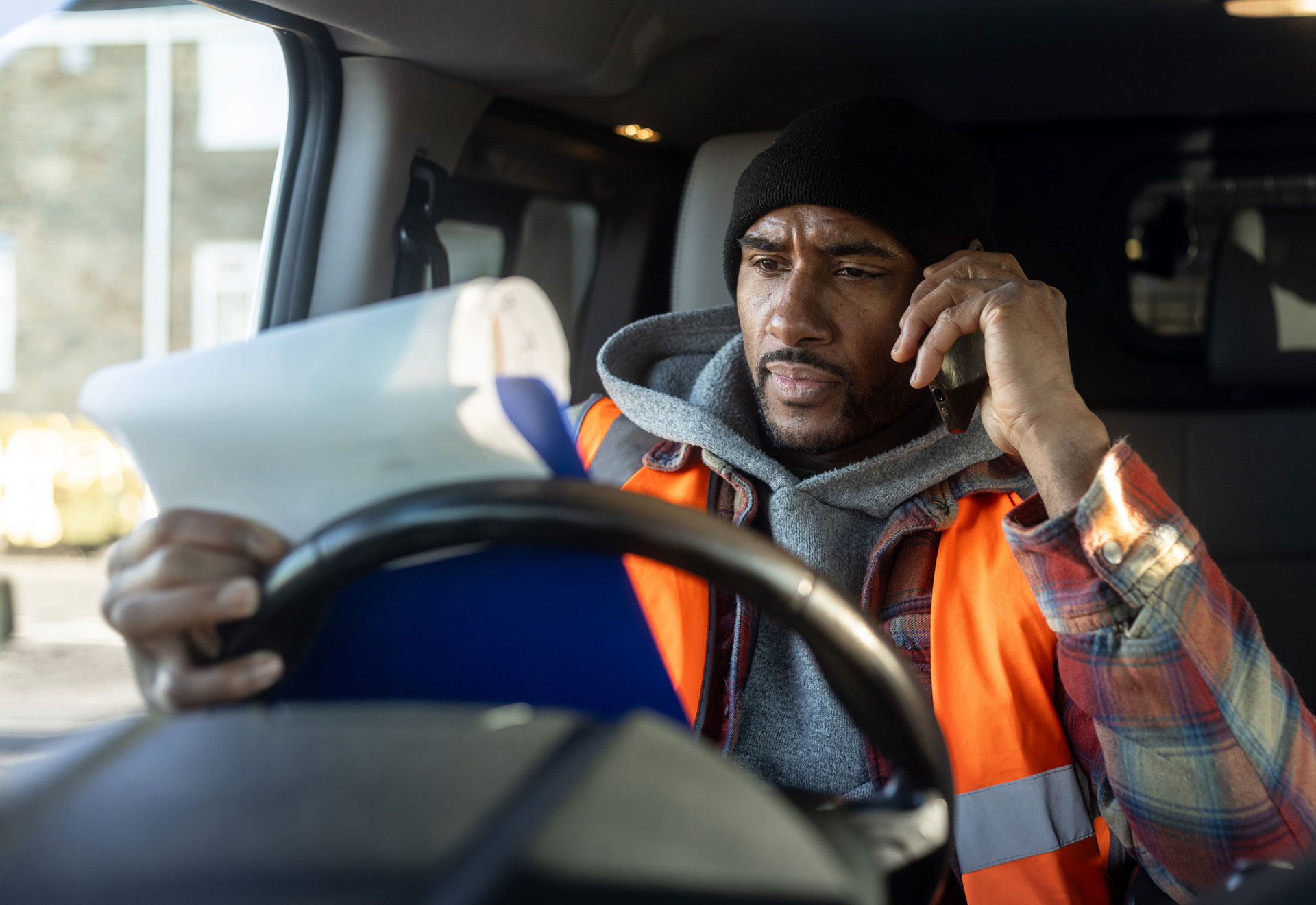- Adjust your seat and steering wheel, so that they are the right height and position for you.