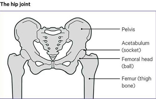 A joint is a part of the body where two or more bones meet. Your hip joint consists of a ball at the top of the thigh bone, which fits into a socket in your pelvis.